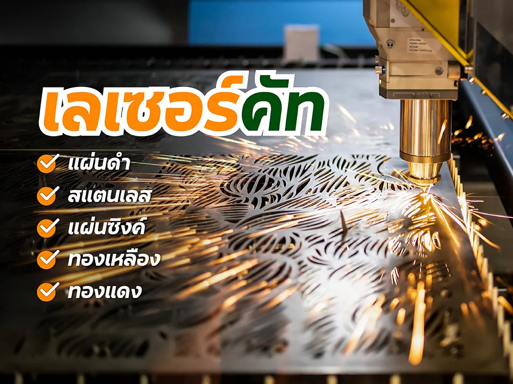 กระบวนการตัดโลหะแผ่นด้วยลำแสงเลเซอร์ที่ควบคุมด้วยระบบคอมพิวเตอร์ (CNC) เพื่อให้ได้ชิ้นงานที่แม่นยำตามแบบ โดยเครื่องตัดเลเซอร์จะโฟกัสลำแสงพลังงานสูงลงบนแผ่น เพื่อหลอมและตัดวัสดุในตำแหน่งที่ต้องการอย่างแม่นยำ จุดเด่นของการตัดเลเซอร์คือความแม่นยำสูง ตัดได้ตรงตามแบบ ลดความคลาดเคลื่อนได้อย่างมีประสิทธิภาพ รอยตัดที่ได้มีความเรียบเนียน ช่วยประหยัดเวลาและต้นทุนในการผลิต